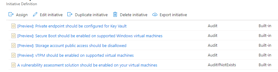 • There should be at least 1 policy definition that needed to be added to a custom initiative to create