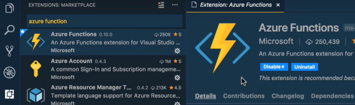 In our instance of Visual Studio Code, we already have the Azure Functions Extension installed. So, if you don't, make sure you go ahead and hit the "Install" button.