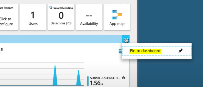 Now, let's say we want to see this chart every time we come into the portal. We want to click on this icon shown below on the right, and then we are going to hit "Pin to dashboard".