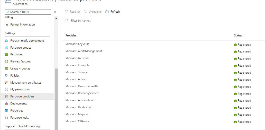 Follow the below steps to enable resource providers for your Azure subscription: