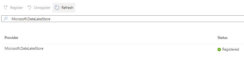 For this, we need to search for Microsoft.DataLakeStore in resource providers and then we need to select the service and click "Register"