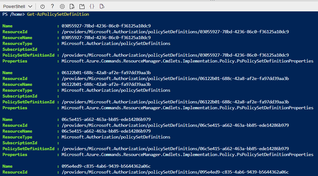 2. Use the Get-AzPolicySetDefinition PowerShell command to get Azure Policy Initiative Definitions