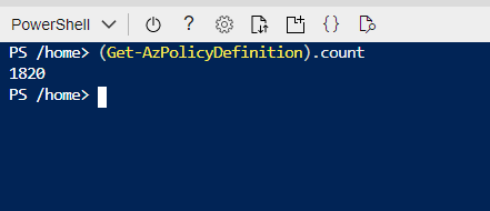 5. Use (Get-AzPolicyDefinition).count PowerShell command to get the count of Azure Policy Definitions.