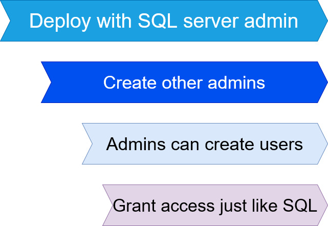 Now that you've seen what the capabilities look like for authentication, it is important to remember when you deploy, you're going to choose your SQL Server admin. But after you deploy, you can actually add an Azure Active Directory admin both for MI or Azure Database. Then just like with SQL Server, admins that you've authenticated can now create other users, other logins. Then once you're done with that process, you grant access to SQL Server within this system just like you would a SQL Server whether it's using roles, whether that's granting specific authentication to objects, to logins, or to users.