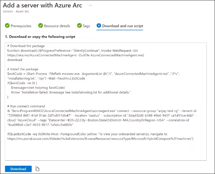 You basically can download and run this script to complete the connection process connecting on-premises VM to Azure for management.