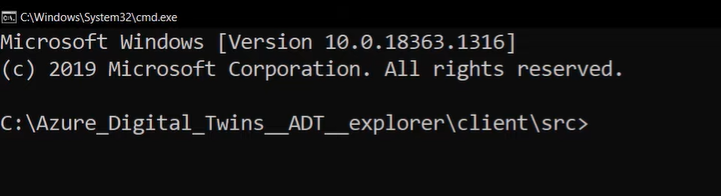 Once you've downloaded and unzipped the sample application, navigate to the client folder and then to the source. You need to open that path in a command window like as shown below: