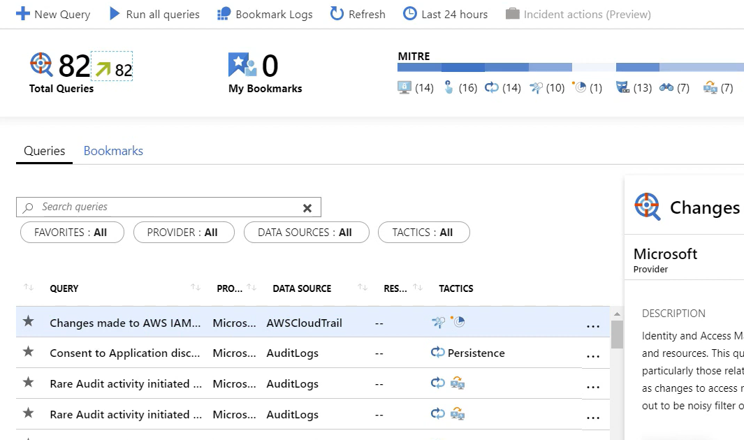 You can use tools like dashboards to gain more insights into your security data. Azure Sentinel provides more tools to analyze data and identify security incidents. You can hunt for them with queries as shown below: