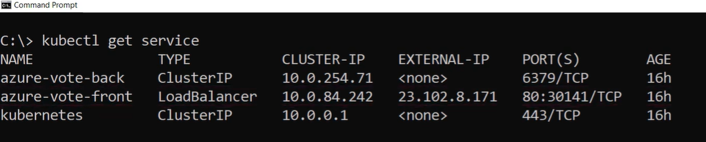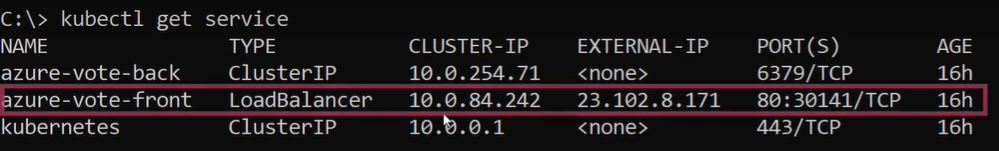 Here we have an AKS cluster running, and it is running a sample application. Let us check which services are running and how to access them using the below command: