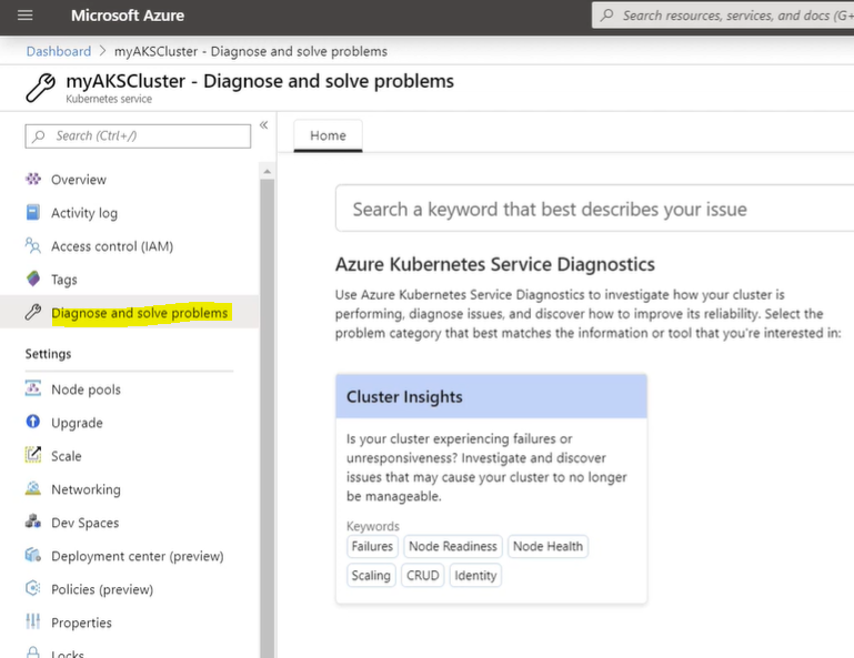 In this article, we will learn how to use Azure Kubernetes Service Diagnostics. A solution that runs inside a Kubernetes cluster can quickly become complex. Azure Kubernetes diagnostics can help you to investigate, diagnose and resolve issues in your cluster quickly.