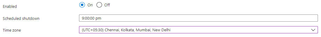 Step 5: In this step, we are going to enable auto-shutdown and we will schedule a time for a select time zone.