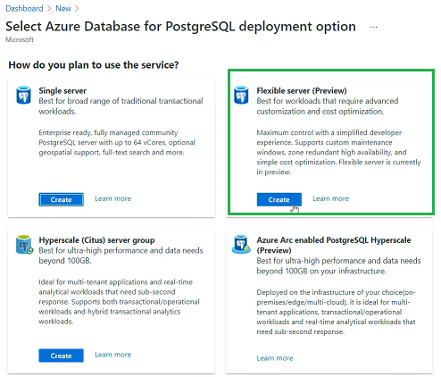 Microsoft Azure - Using Flexible Server in Azure Database for PostrgeSQL