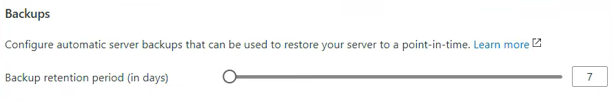 Here, we can also configure the compute and storage in more detail. We can even configure the backup retention. Let's leave that as it is and go back.