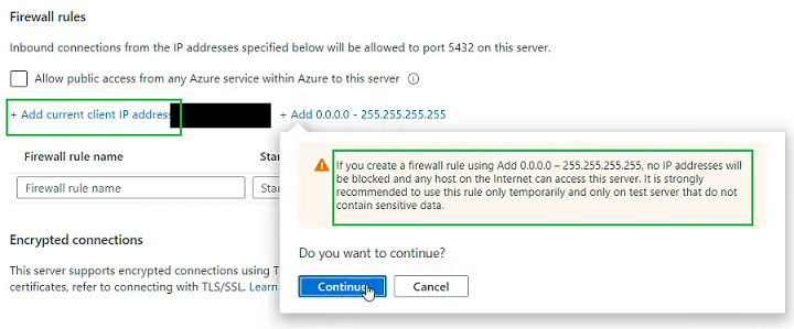 Step 6: Now we'll add to blanket IP mask that allows all IP addresses to connect to the server. You shouldn't do this in a real-world scenario, but only for development and demos.