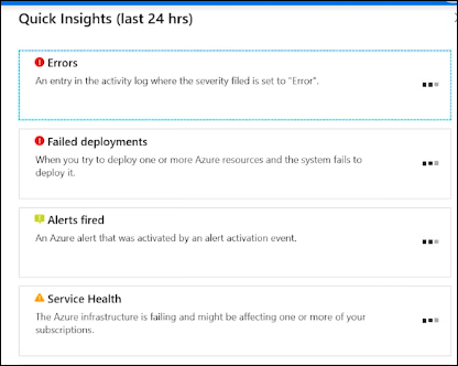 From this more info panel, you can also add an activity log alert or create a new support request. So, the activity log is really great because it enables you to see your events happening on every resource that you have.