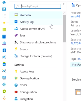So, you are in a VM right now, but you could just as easily be in a web app where you can see activity log here as well. Or, you could also be in a storage account where, again, you can find an activity log in the same place.