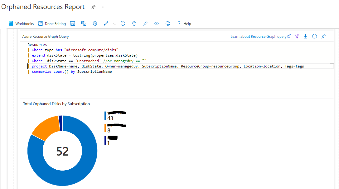 Azure Resource Graph Query to find the total number of orphaned disks by Subscription.