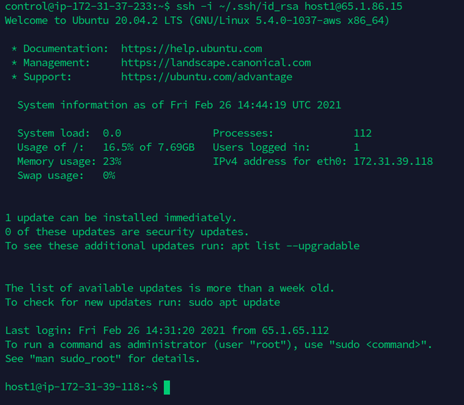 If you want to use EC2 instances then you need to make sure that each of the instances(hosts) is reachable by the control node and to do that you need to add the SSH public keys of the host in the control nodes authorized SSH keys and vice-versa. So, lets do that first using the below command: