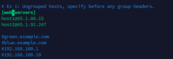 Now we need to add the host address inside the host inventory which is a file in /etc/ansible called host where we can add IP-addresses or aliases or group number of IP-addresses. Go to /etc/ansible/hosts file and add the IP address of the host machine. You can either enter one by one or create a group which can then be used in the playbook to specify these bunch of addresses by entering the group name.