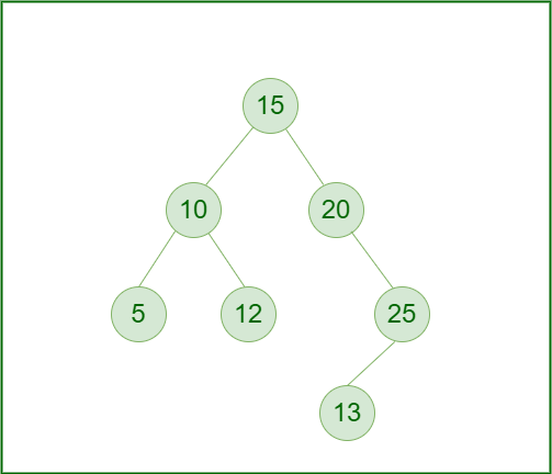 Now suppose we want to insert element 13 into this tree. We first insert it as we would in a standard binary search tree, by finding the correct position for it based on its value. In this case, we would insert it as the right child of the node with value 12: