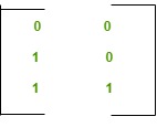 Discrete Mathematics | Representing Relations Last Updated : 11 Jul, 2025 Comments Improve Suggest changes 21 Likes Like Report Prerequisite - Introduction and types of Relations Relations are represented using ordered pairs, matrix and digraphs: Ordered Pairs - In this set of ordered pairs of x and y are used to represent relation. In this corresponding values of x and y are represented using parenthesis. Example: {(1, 1), (2, 4), (3, 9), (4, 16), (5, 25)}This represent square of a number which means if x=1 then y = x*x = 1 and so on.Representing using Matrix - In this zero-one is used to represent the relationship that exists between two sets. In this if a element is present then it is represented by 1 else it is represented by 0. In this method it is easy to judge if a relation is reflexive, symmetric or transitive just by looking at the matrix. Suppose R is a relation from X={x1, x2, .....xn} to Y={y1, y2....yn}It is represented by :-M[i, j]={1, if (Xi, Yj) belongs to R 0, if (Xi, Yj) does not belong to R} If A={1, 2, 3} and B={1, 2} and Relation R is R = {(2, 1), (3, 1), (3, 2)} then all corresponding value of Relation will be represented by "1" else "0". It is represented as: It's corresponding possible relations are: Digraph - A digraph is known was directed graph. It consists of set 'V' of vertices and with the edges 'E'. Here E is represented by ordered pair of Vertices. In the edge (a, b), a is the initial vertex and b is the final vertex. If edge is (a, a) then this is regarded as loop. Example: Suppose we have relation forming R = {(1, 2), (1, 3), (1, 4), (2, 3), (2, 4), (3, 4)} This relation is represented using digraph as: Create Quiz Comment V vaishali bhatia Follow 21 Improve V vaishali bhatia Follow 21 Improve Article Tags : Engineering Mathematics Discrete Mathematics Explore Linear AlgebraMatrices3 min readRow Echelon Form4 min readEigenvalues and Eigenvectors11 min readSystem of Linear Equations5 min readMatrix Diagonalization8 min readLU Decomposition6 min readFinding Inverse of a Square Matrix using Cayley Hamilton Theorem in MATLAB4 min readSequence & SeriesMathematics | Sequence, Series and Summations8 min readBinomial Theorem15+ min readFinding nth term of any Polynomial Sequence4 min readCalculusLimits, Continuity and Differentiability8 min readCauchy's Mean Value Theorem6 min readTaylor Series7 min readInverse functions and composition of functions3 min readDefinite Integral | Definition, Formula & How to Calculate8 min readApplication of Derivative - Maxima and Minima5 min readProbability & StatisticsMean, Variance and Standard Deviation10 min readConditional Probability11 min readBayes' Theorem13 min readProbability Distribution - Function, Formula, Table11 min readCovariance and Correlation6 min readPractice QuestionsLast Minute Notes - Engineering Mathematics15+ min readEngineering Mathematics - GATE CSE Previous Year Questions4 min read Like