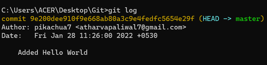 Let's now use git show command and see what all information we get using the command.