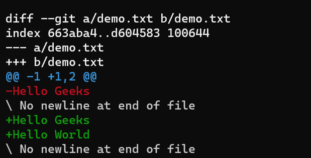 As we can see that this part starts with diff --git a/demo.txt b/demo.txt .