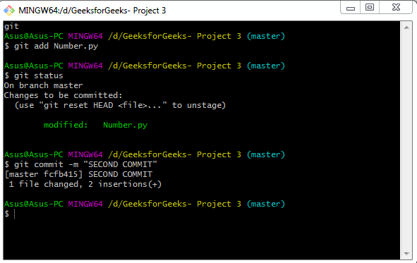 Once the file is staged, you need to commit it to the repository to save your changes permanently. Use the git commit command with a descriptive commit message: