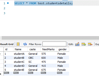 + student.getName() + " NEETMarks : " + student.getNeetMarks());