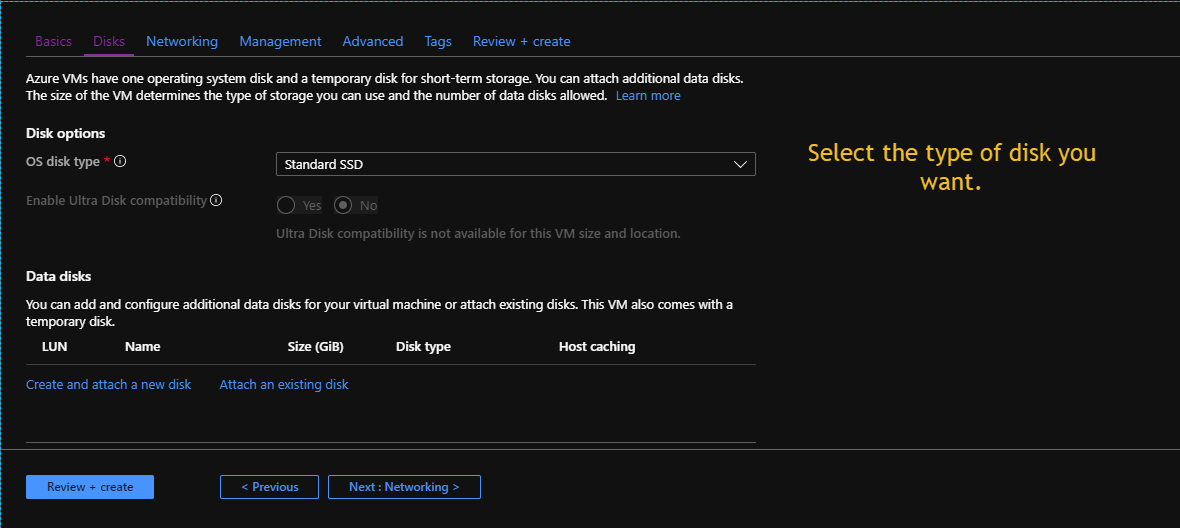 10) You can choose to use the SSD disk. Just select the Standard SSD option.