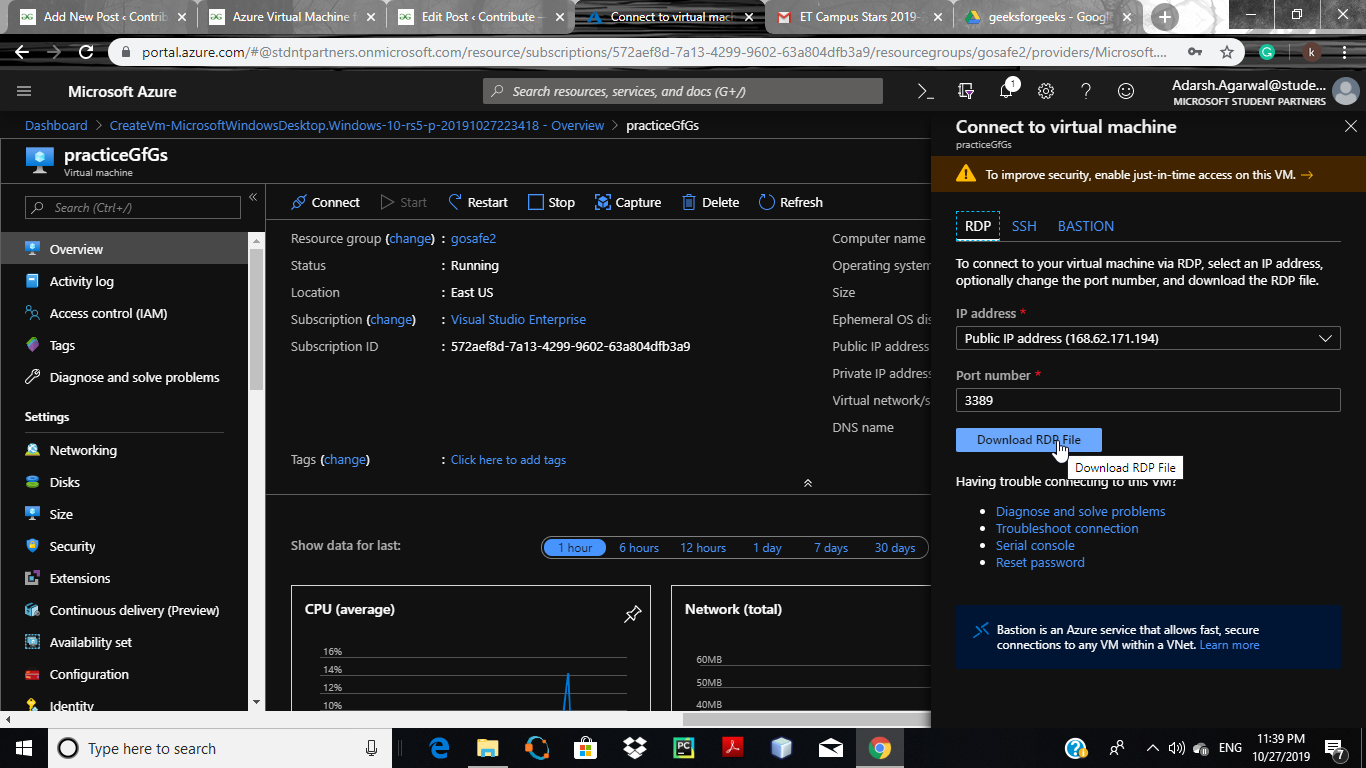 Click on Create and wait for some time, your Virtual Machine will be created. Now we will connect to it using RDP.