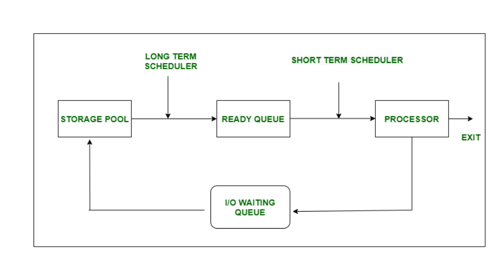 Difference between Short-Term and Medium-Term Scheduler Last Updated : 15 Jul, 2025 Comments Improve Suggest changes 4 Likes Like Report Prerequisite – Process Schedulers 1. Short-Term Scheduler : Short term scheduler is also known as CPU scheduler. Its main objective is to boost the system performance according to certain set criteria. Short term scheduler helps to select the group of processes that are ready to execute and allocate CPU to each one of them. Unlike Middle term scheduler, it executes more frequently i.e within a few seconds. Short term scheduler has less control over DOM (Degree of Multi-programming). 2. Middle-Term Scheduler : Middle term scheduler is also known as the Swapping scheduler. Its main objective is to swap out the suspended processes from the main memory. If a running process make I/O request it becomes suspended. A suspended process will not show any progress towards completion so it should be moved to secondary storage, hence providing space for new processes. Unlike Short term scheduler, it's execution is not quite frequent. Middle term scheduler reduced the DOM (Degree of Multi-programming). Difference between Short-Term and Medium-Term Scheduler : S.No. SHORT-TERM SCHEDULER MIDDLE-TERM SCHEDULER 1. Short-Term scheduler is also known as CPU Scheduler. Middle-Term scheduler is also known as Swapping Scheduler. 2. Speed of Short-Term scheduler is very fast as compared to middle-Term scheduler. Its speed is less than Short-Term scheduler. 3. It provides less control over Degree of programming. It reduces the Degree of Programming. 4. Its presence in Time sharing system is very minimal. Middle-term scheduler is a part of Time sharing system. 5. In short-term scheduler, there occurs transition of process from ready to executing state. In middle-term scheduler, no process transition state occurs. 6. Its function is to selects those processes which are ready to execute. Its function is to reintroduce process back in the memory. Create Quiz Comment V vanshgaur14866 Follow 4 Improve V vanshgaur14866 Follow 4 Improve Article Tags : Operating Systems Difference Between GATE CS Operating Systems-CPU Scheduling Explore OS BasicsIntroduction to Operating System5 min readTypes of Operating Systems7 min readKernel in Operating System3 min readSystem Call2 min readWhat happens when we turn on computer?3 min readProcess ManagementIntroduction of Process Management4 min readCPU Scheduling in Operating Systems7 min readIntroduction to Process Synchronization4 min readSolutions to Process Synchronization Problems4 min readClassical IPC Problems2 min readIntroduction of Deadlock in Operating System3 min readHandling Deadlocks2 min readMultithreading in OS - Different Models4 min readMemory ManagementIntroduction to memory and memory units2 min readMemory Management in Operating System5 min readBuddy System - Memory Allocation Technique4 min readOverlays in Memory Management4 min readVirtual Memory in Operating System7 min readPage Replacement Algorithms in Operating Systems5 min readOperating system based Virtualization5 min readI/O ManagementFile Systems in Operating System4 min readImplementing Directory Management using Shell Script3 min readSecondary Memory7 min readDisk Scheduling Algorithms9 min readDifference between Spooling and Buffering5 min readImportant LinksLast Minute Notes â Operating Systems15+ min readOperating System Interview Questions15+ min read Like