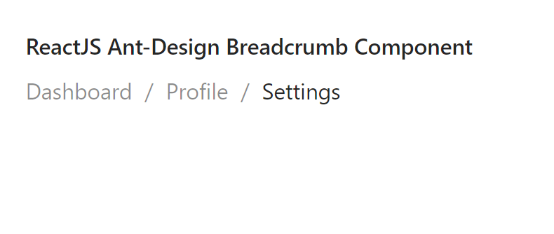 Ant Design Library has this component pre-built, and it is very easy to integrate as well. Breadcrumb Component provides a way to indicate the location of the current page. We can use the following approach in ReactJS to use the Ant Design Breadcrumb Component.