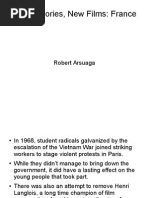 This document discusses Jean Rouch's 1954 film Les Maitres Fous and the controversy that arose from its screening. The film depicted ritual possession in Ghana and deeply disturbed some viewers who saw it as racist. Although Rouch intended the film to challenge European conceptions of Africa, its graphic images overwhelmed its philosophical themes. As a result, Rouch shifted to making films that more directly confronted European colonialism and ethnocentrism. The document also discusses Antonin Artaud's theories of theater and cinema. Artaud believed cinema and theater could transform audiences psychologically and politically by presenting unsettling images rather than narratives. These theories are said to have influenced Rouch's later, more politically engaged films that