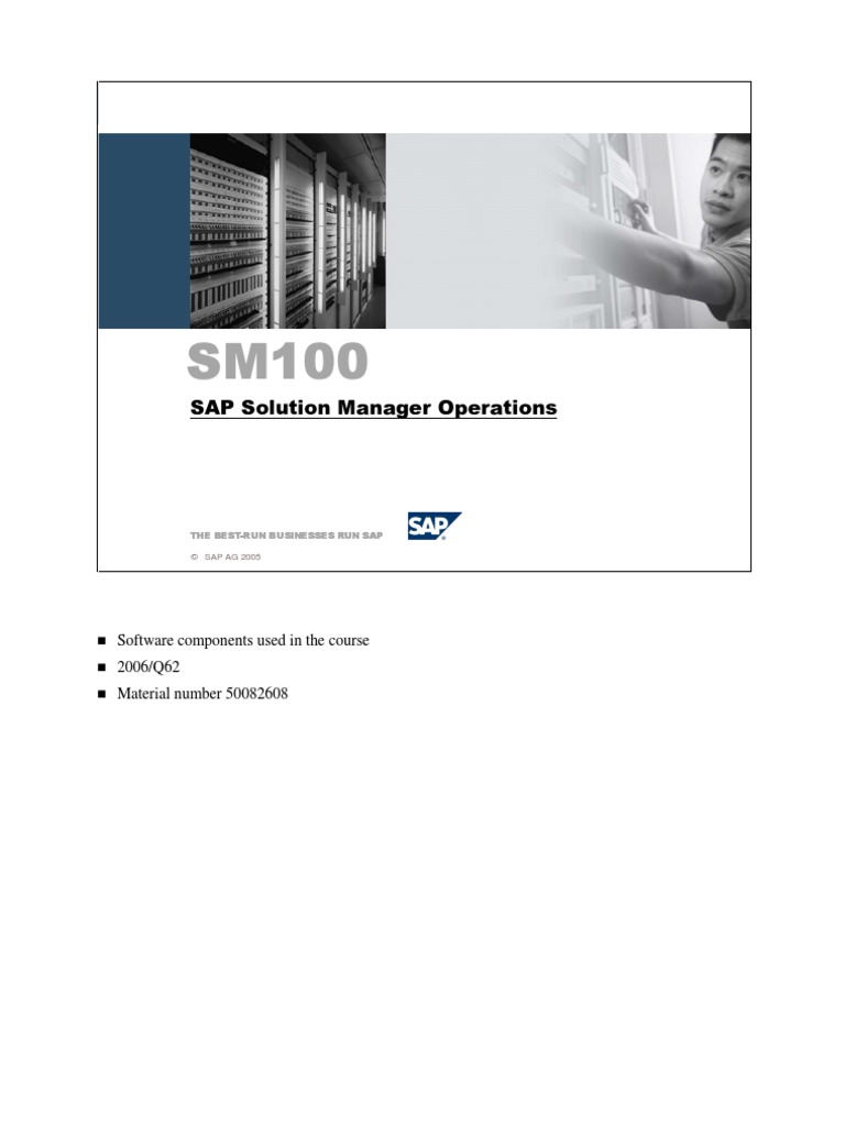 With SAP Solution Manager you can manage your SAP solution throughout the entire life cycle to ...