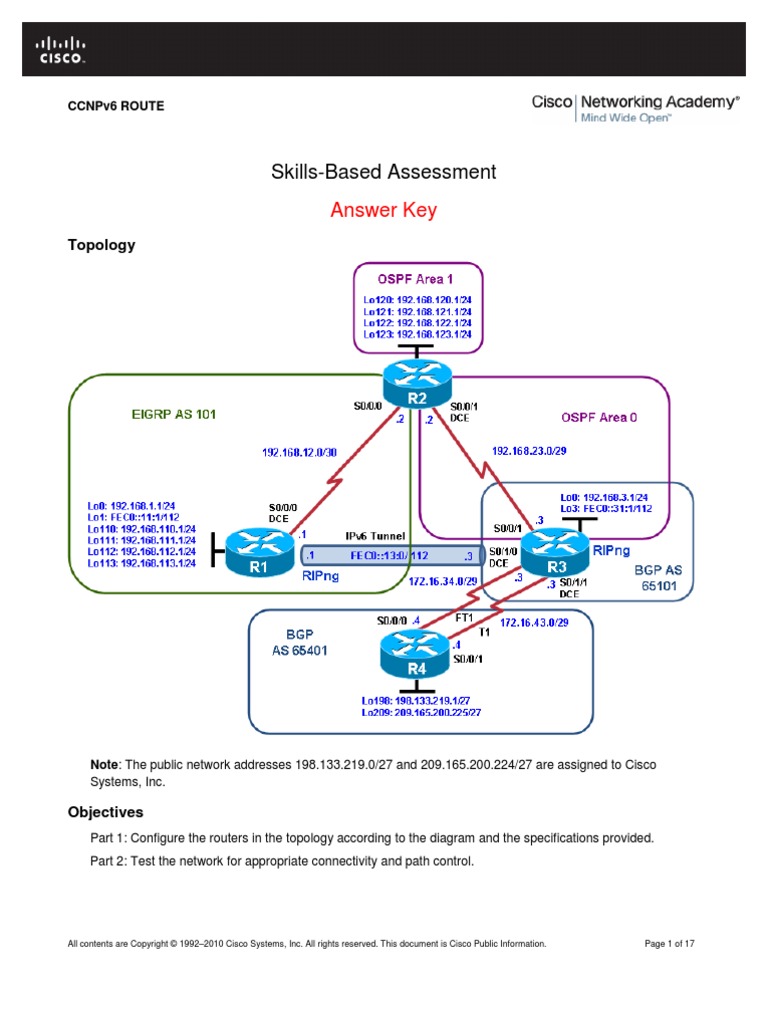 This skills-based assessment (SBA) is the final practical exam of Academy training for the course CCNPv6