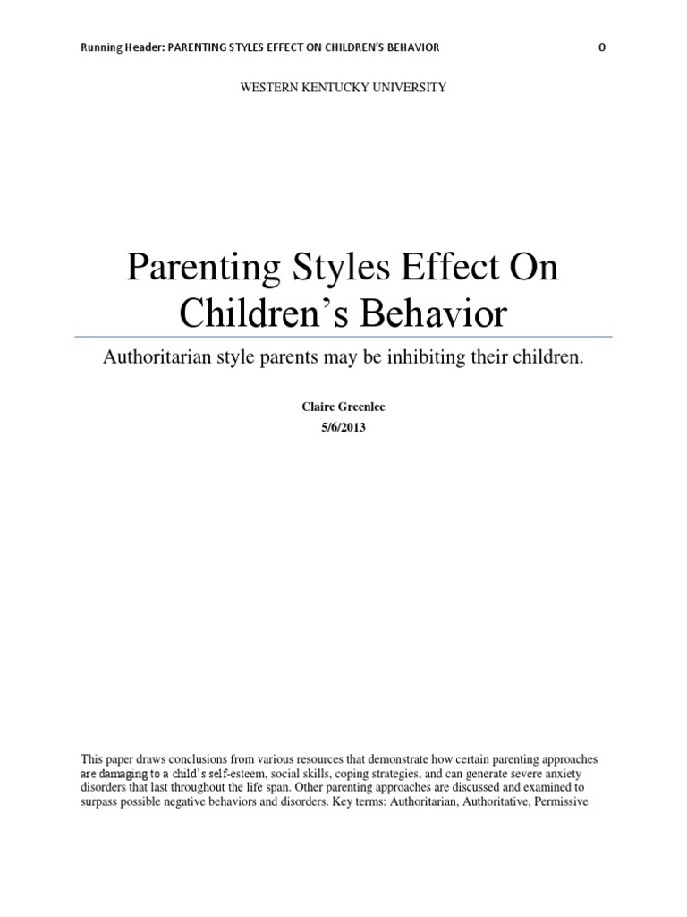 Running Header: PARENTING STYLES EFFECT ON CHILDRENS BEHAVIOR WESTERN KENTUCKY UNIVERSITY