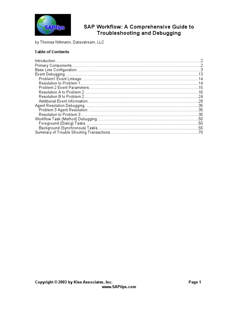 As we proceed, we will review problem solving and debugging techniques used in each of these components. Copyright 2003 by Klee Associates, Inc. www.SAPtips.com Page 2