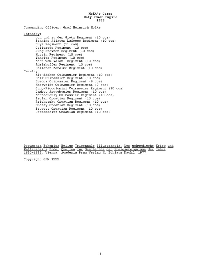 Wallensteins Ende, Quellen zur Geschichte der Kreigsereignisse der Jahre