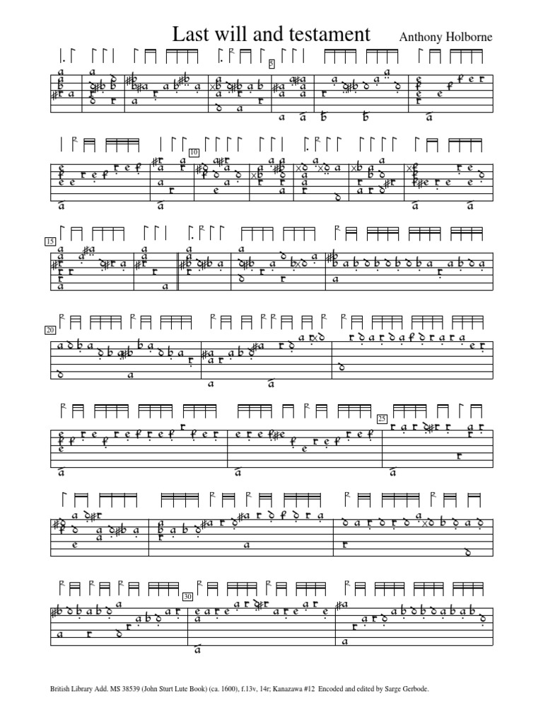 British Library Add. MS 38539 (John Sturt Lute Book) (ca. 1600), f.13v, 14r; Kanazawa #12 Encoded and edited by Sarge Gerbode.
