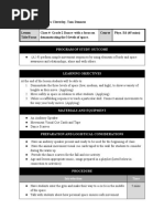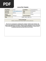 This lesson plan outlines a 20-minute performing arts lesson for preschoolers focused on using music to imagine animal movements. Students will dance to music that indicates different tempos and dynamics, moving their bodies to match. Formative assessment will observe if students can move their bodies in various ways corresponding to the music. The lesson introduces animal movements, has students practice dancing to songs, and closes with a guessing game where students mimic animal dances. Accelerated learners will create and perform an original skit using the music concepts.