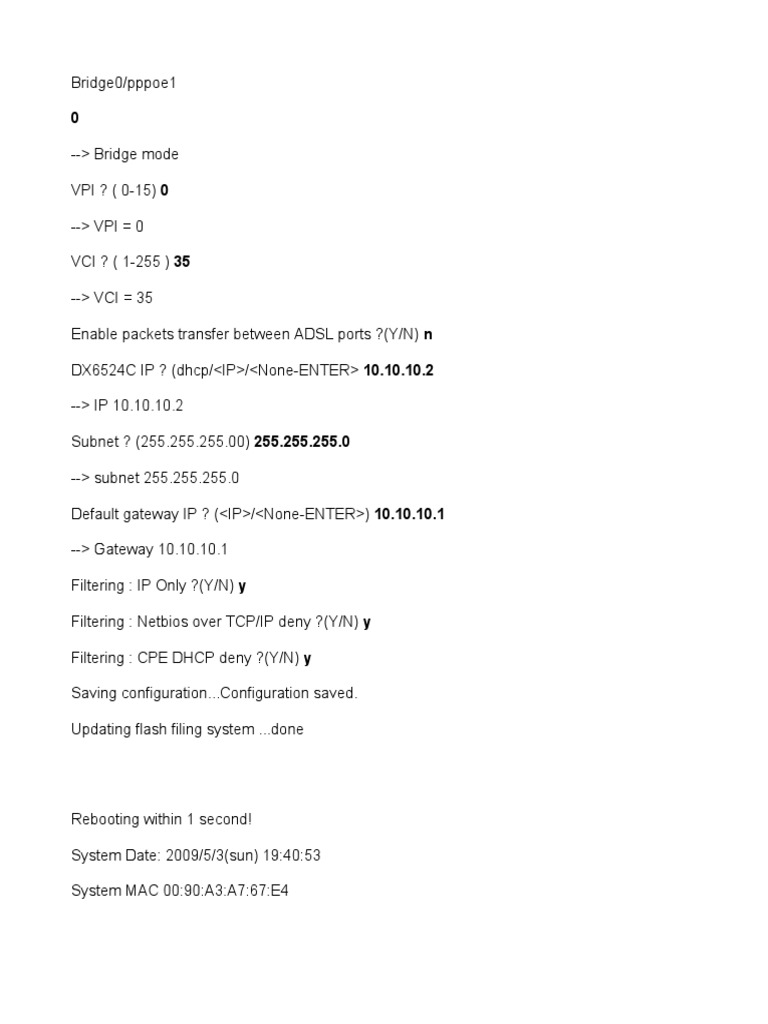 DX6524C IP ? (dhcp/<IP>/<None-ENTER> 10.10.10.2