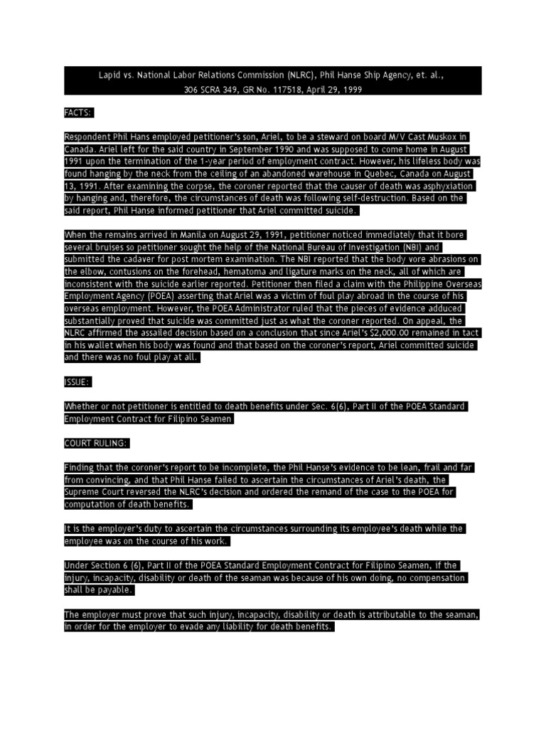 Lapid vs. National Labor Relations Commission (NLRC), Phil Hanse Ship Agency, et. al.