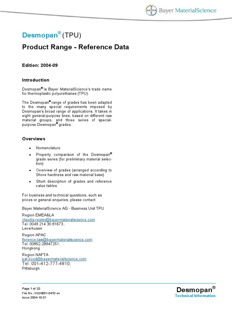 Midway through 2003, we changed the nomenclature for our Desmopan products. These changes