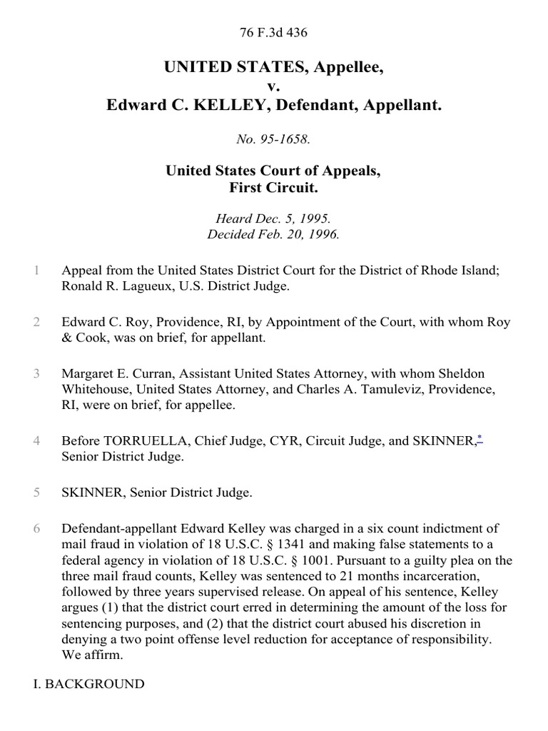 United States v. Kelley, 76 F.3d 436, 1st Cir. (1996)