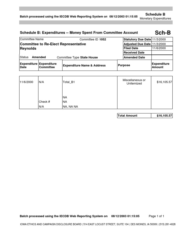 Reynolds, Committee To Re-Elect Representative Reynolds - 1052 - B