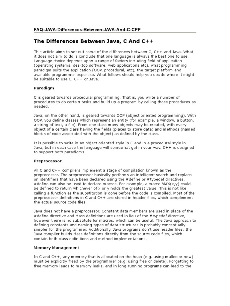 FAQ-JAVA-Differences-Between-JAVA-And-C-CPP