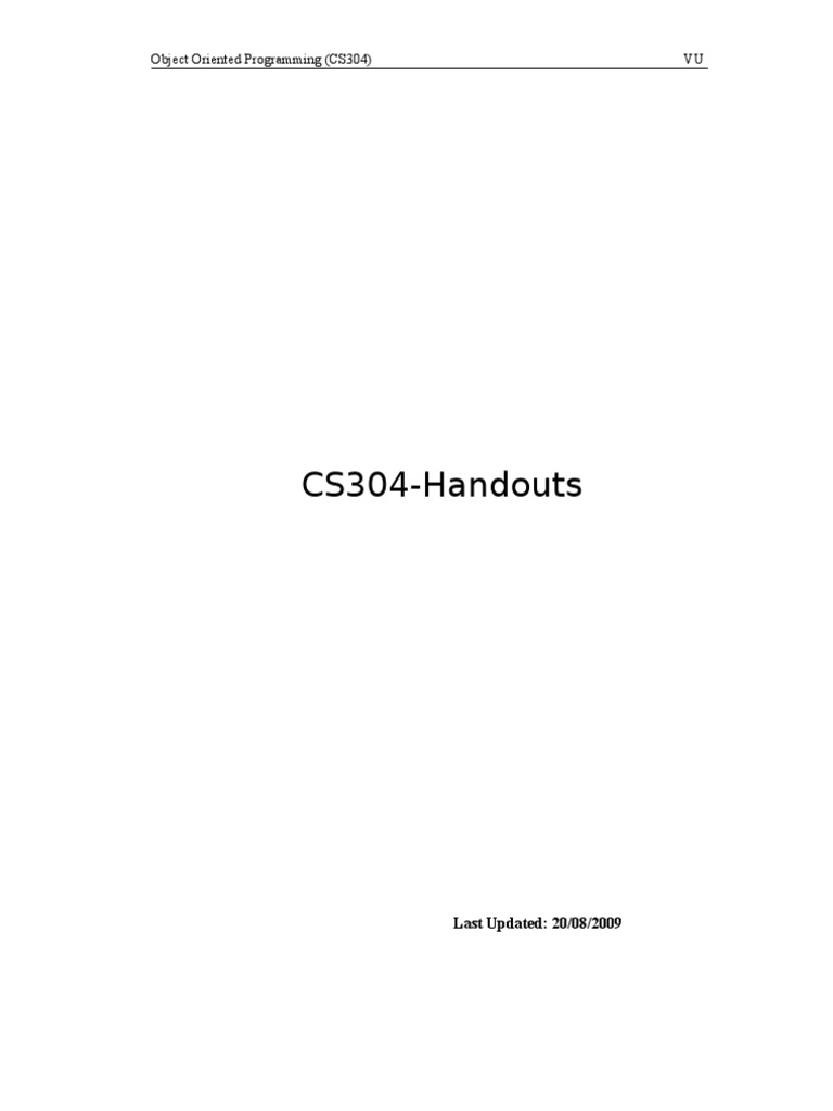 1.1. Introduction Course Objective: Objective of this course is to make students familiar with the concepts of object oriented programming. These concepts will be reinforced by their implementation in C++. Course Contents: The main topics that we will study in the 45 lectures of this course are given below, Object Orientation Objects and Classes Overloading Inheritance Polymorphism Generic Programming Exception Handling Introduction to Design Patterns Recommended Text Book: C++ How to Program ( Deitel & Deitel ) Reference Books: 1. Object-Oriented Software Engineering By Jacobson, Christerson, Jonsson, Overgaard (For object oriented programming introductory concepts) 2. The C++ Programming Language By Bjarne Stroustrup (For better c++ understanding)
