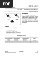 DESCRIPTION The LM117/LM217/LM317 are monolithic integrated circuit in TO-220 and TO-3 packages intended for use as positive adjustable voltage regulators. They are designed to supply more than 1.5A of load current with an output voltage adjustable over a 1.2 to 37V range. The nominal output voltage is selected by means of only a resistive divider, making the device exceptionally easy to use and eliminating the stocking of many fixed regulators. ABSOLUTE MAXIMUM RATING