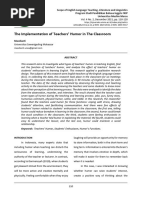 It definitely lessens the dominating position of the teacher at tertiary level but at the same time provides the instructors such graduates who may become his/her future reference in professional life. Further, as the results show humorous way teaching a foreign language brings the instructors closer to learners, especially at tertiary level in teacher education programs, and a solid relationship is established to ensure effective English language teaching and learning at tertiary level in teacher education programs.