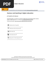 25. Bryant, J., Zillmann, D. (1989). Using humor to promote learning in the classroom. Humor and children's development. Ed. P. McGhee. NY: Haworth, 49-78. 26. Clabby, J. F., Jr. (1979). Humor as a preferred activity of the creative and humor as afacilitator of learning. Psychology: A Quarterly Journal of Human Behavior 16 (1), 5-12. 27. Colwell, C. G. (1981). Humor as a motivational and remedial technique. Journal of Reading 24 (6), 484-86. 28. Gorham, J., Christophel, DM., (1990). Relationship of teachers' use of humor in the classroom to immediacy and student learning, Communication Education 39 (1), 46-62. 29. Pollak, J. P., Freda, P. (1997). Humor, learning, and socialization in middle level classrooms. Clearing House 70 (4 ), 176-78. 30. Deneire, M. (1995). Humor and foreign language teaching. Humor: International Journal of Humor Research 8 (3), 285-298. 31. Berk, R.A. (1996). Student ratings of 10 strategies for using humor in college teaching.Journal on Excellence in College Teaching, 7(3), 71-92. 32. Berk, R.A. (2002). Humor as an instructional defibrillator: Evidence-based techniques inteaching and assessment. Sterling, VA: Stylus Publishing, LLC. 33. Caron, J.E. (2002). From ethology to aesthetics: Evolution as a theoretical paradigm forresearch on laughter, humor, and other comic phenomena. Humor 15(3), 245-281. 34. Mahoney, D.L. (2000). Is laughter the best medicine or any medicine at all? Eye on PsiChi, 4(3), 18-21. McKeachie, W.J. (1994). Teaching tips: Strategies, research, and theory for college and university teachers (9th edition). Lexington, MA: DC Health and Company. 35. Anderson, C.A., and Arnoult, L.H. (1989). An examination of perceived control, humor,irrational beliefs, and positive stress as moderators of the relation between negative stress and health. Basic and Applied Social Psychology, 10(2), 101-117. 36. Bennett, H.J. (2003). Humor in medicine. Southern Medical Journal, 96(12), 1257-1261. 37. Berk, R.A. (1996). Student ratings of 10 strategies for using humor in college teaching.Journal on Excellence in College Teaching, 7(3), 71-92. 38. Cornett, C.E. (1986). Learning through laughter: Humor in the classroom. Bloomington,IN: Phi Delta Kappa Educational Foundation. 39. Garner, R.L. (2006). Humor in pedagogy: How ha-ha can lead to aha! College Teaching,54(1), 177-180. 40. Philareatou, A. G. (2006). Learning and laughing about gender and sexuality throughhumor: The woody allen case. The Journal of Mens Studies, 14(2), 133-144. 41. Powell, J. P. A. (1985). Humor and Teaching in Higher Education. Studies in Higher Education, 10 (1), 79-90 42. Proctor, R. F. (1994). Communicating rules with a grin. Paper presented at the annual meeting of the Central States Communication Association, Oklahoma City, OK. 43. Stambor, Z. (2006). How laughing leads to learning. Monitor on Psychology 37(6), 62-66.